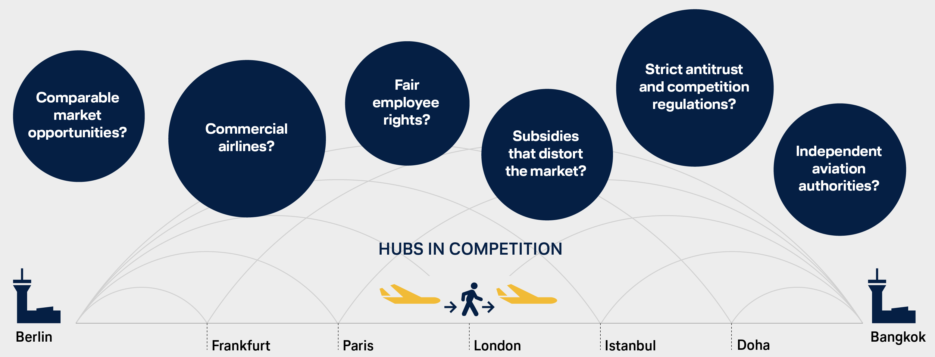 According to a study conducted by the OECD, the German aviation market is among the most liberal in the world. Around 160 airlines from all continents fly to German airports. The basis for this is the EU internal market and aviation agreements negotiated by the Federal Ministry of Transport or the EU Commission. These internationally binding contracts have been safeguarding the steadily increasing diversity of connections worldwide for decades – and are irreplaceable when it comes to fair competition. ...more