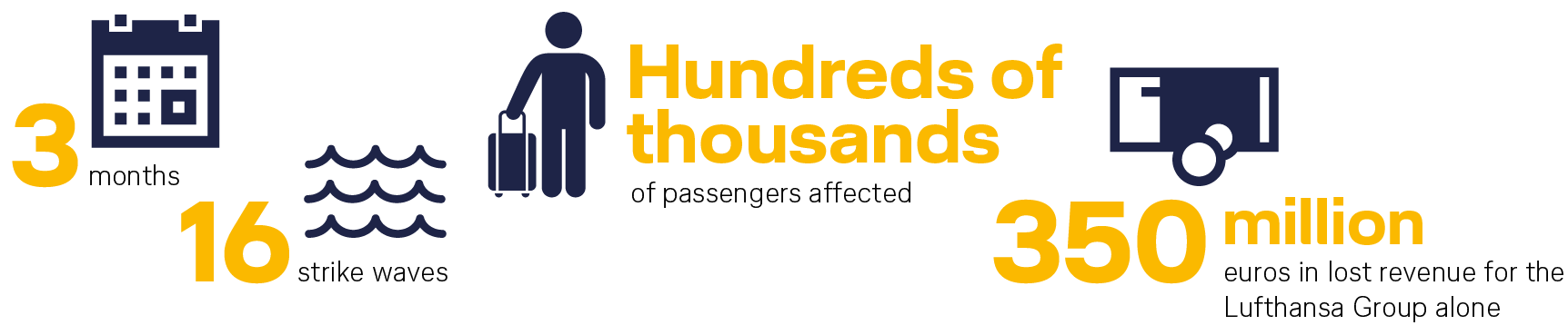 Confrontation instead of cooperation endangers growth and prosperity. The German right to strike should be appropriately regulated for sectors such as aviation, where strikes significantly affect uninvolved third parties (such as passengers). The rule must be: arbitration before strikes. Spain can serve as a role model: a triad of notice periods, emergency service agreements and mandatory arbitration ensures the proportionality in the right to strike there.