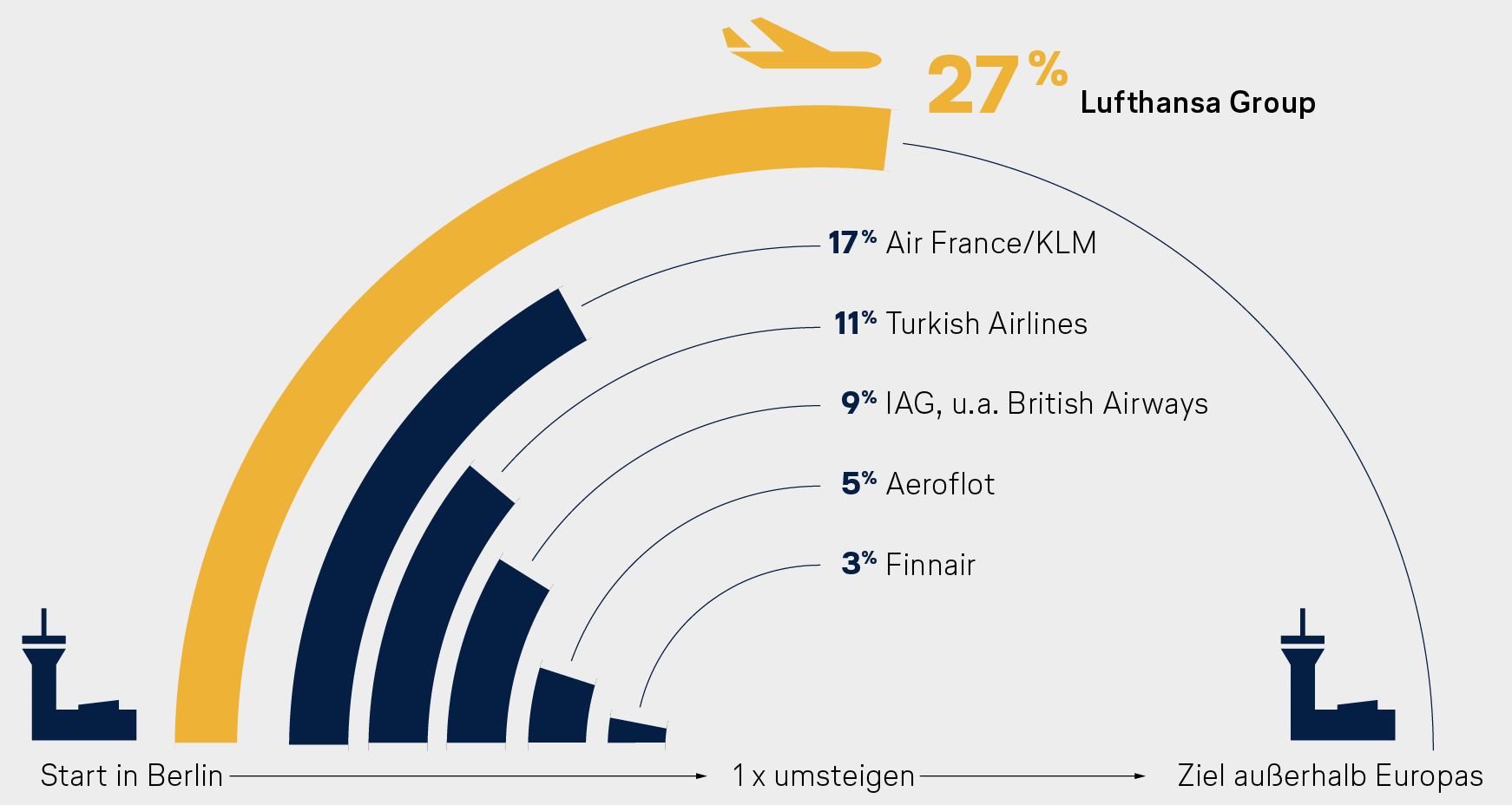 | | Ausgabe 3/2018 Sehr geehrte Leserinnen und Leser des Lufthansa Politikbriefes,vorab möchten wir um Entschuldigung bitten. In den vergangenen Wochen gab es im deutschen und europäischen Luftverkehr eine sehr unerfreuliche Häufung von Flugausfällen und -verspätungen. Das entspricht nicht unserem Selbstverständnis. Wir versichern Ihnen, dass wir jeden Tag gemeinsam mit Flughafenbetreibern und Flugsicherung intensiv an Lösungen der bestehenden Engpässe arbeiten. Doch nicht alle Ursachen liegen in unserer Hand. Gemeinsam mit der Politik wollen wir die Rahmenbedingungen verbessern, um einen reibungslosen Luftverkehr zu gewährleisten. Gerade zum Ferienstart, zu dem wir viele Familien und Kinder begrüßen dürfen, sollte eine ungehinderte Flugreise der Normalfall sein. Die Airlines der Lufthansa Group steuern aktuell rund 340 Ziele in 103 Ländern an. Wir bieten Reisenden auch abseits der großen Drehkreuze hervorragende Verbindungen in alle Welt. Entsprechend groß ist der Anteil an Passagieren, die mit einmaligem Umsteigen über unsere Hubs ihre Ziele auf der Langstrecke erreichen. Siehe Berlin: Mit 27 Prozent Marktanteil belegt die Lufthansa Group in diesem Segment mit großem Abstand Platz eins. Eine gute Nachricht für die Kunden ist, dass die Ticketpreise in den vergangenen Monaten deutlich gefallen sind. Laut Angaben des Statistischen Bundesamtes lagen die Preise im innerdeutschen Luftverkehr im April 2018 gegenüber 2010 rund fünf Prozent niedriger – im gleichen Zeitraum ist der Verbraucherpreisindex um zehn Prozent gestiegen. Mit unserem neuen Politikbrief wollen wir Sie über diese und weitere Themen informieren. Eine angenehme Lektüre wünschen |