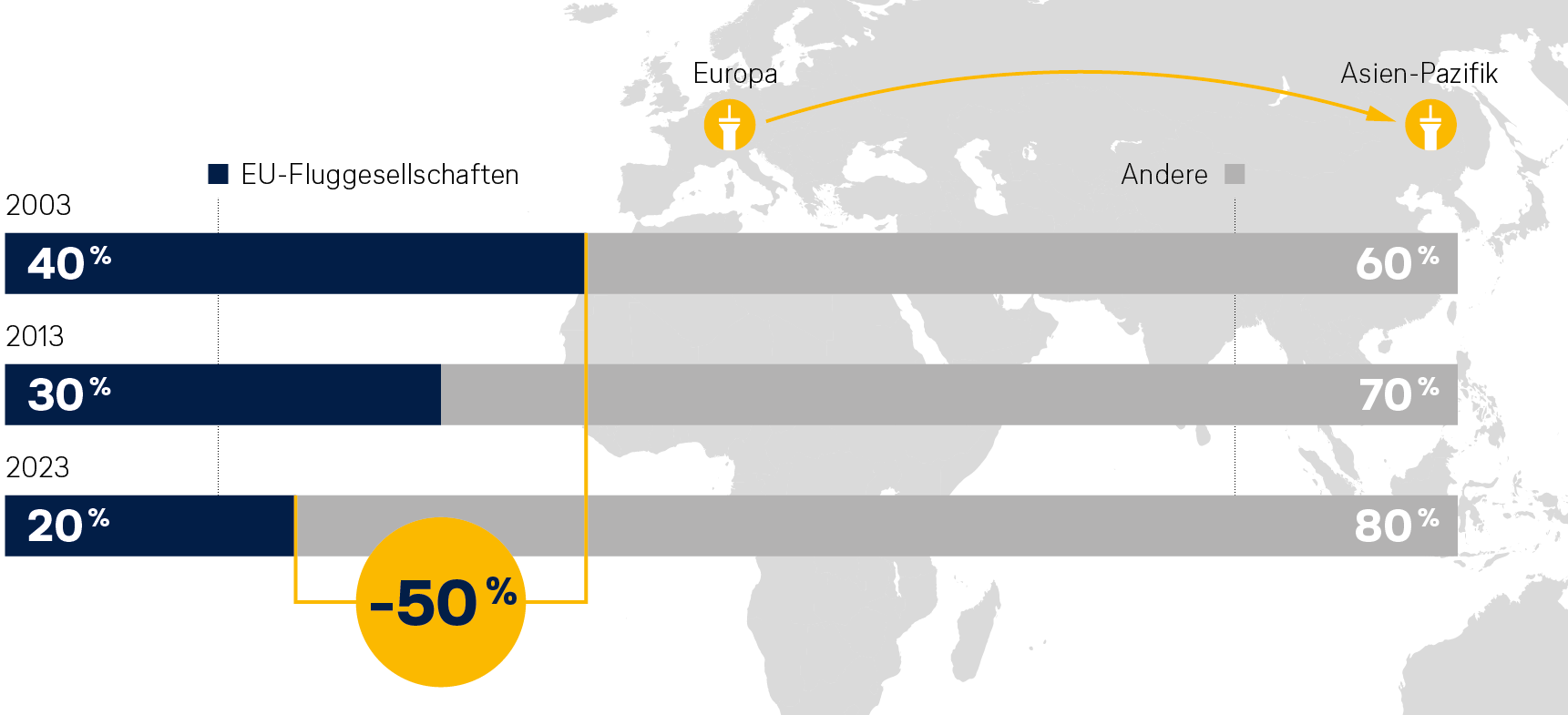 EU-Airlines verlieren Marktanteile auf Strecken von Europa nach Asien